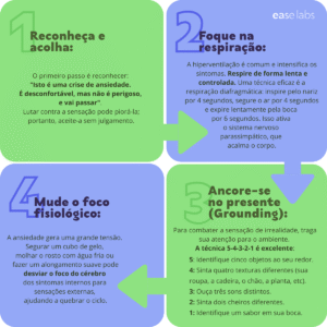 Desenvolva um “kit de primeiros socorros” mental. Tenha uma frase de segurança, como “Meu corpo está apenas reagindo, e eu sei como acalmá-lo”. Repita-a para si mesmo. Essa autocompaixão é fundamental e muda a narrativa interna de pânico para uma de autocuidado e controle.
